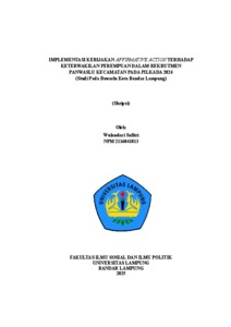 WULANDARI , SAFITRI (2025) IMPLEMENTASI KEBIJAKAN AFFIRMATIVE ACTION TERHADAP KETERWAKILAN PEREMPUAN DALAM REKRUTMEN PANWASLU KECAMATAN PADA PILKADA 2024 (Studi Pada Bawaslu Kota Bandar Lampung). FAKULTAS ILMU SOSIAL DAN ILMU POLITIK, UNIVERSITAS LAMPUNG.