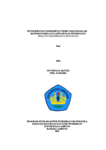 VIVI , IRVANA SAFITRI (2025) PENGEMBANGAN KEMAMPUAN PEMECAHAN MASALAH MATEMATIS MELALUI LKPD DENGAN PENDEKATAN REALISTIC MATHEMATICS EDUCATION. Masters thesis, UNIVERSITAS LAMPUNG.