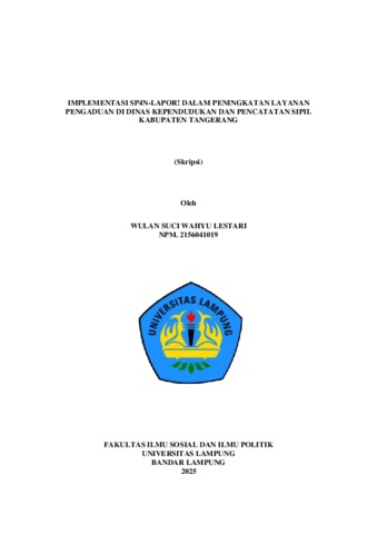 WULAN , SUCI WAHYU LESTARI (2025) IMPLEMENTASI SP4N-LAPOR! DALAM PENINGKATAN LAYANAN PENGADUAN DI DINAS KEPENDUDUKAN DAN PENCATATAN SIPIL KABUPATEN TANGERANG. FAKULTAS ILMU SOSIAL DAN ILMU POLITIK, UNIVERSITAS LAMPUNG.