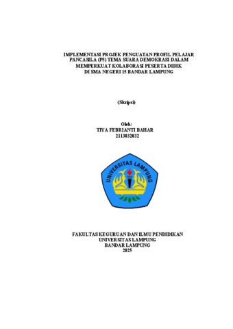 TIYA , FEBRIANTI BAHAR (2025) IMPLEMENTASI PROJEK PENGUATAN PROFIL PELAJAR PANCASILA (P5) TEMA SUARA DEMOKRASI DALAM MEMPERKUAT KOLABORASI PESERTA DIDIK DI SMA NEGERI 15 BANDAR LAMPUNG. FAKULTAS KEGURUAN DAN ILMU PENDIDIKAN, UNIVERSITAS LAMPUNG.