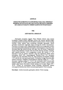 Gastropoda merupakan anggota Filum Moluska terbesar yang mampu beradaptasi terhadap kondisi lingkungan ekstrem dan berperan penting sebagai pengendali populasi makroalga serta bioindikator kualitas perairan. Teluk Lampung memiliki variasi substrat yang mendukung kehidupan gastropoda, namun perbedaan karakteristik lingkungan dapat memengaruhi struktur komunitasnya. Penelitian ini bertujuan untuk mengidentifikasi spesies serta menganalisis struktur komunitas gastropoda berdasarkan kelimpahan, keanekaragaman, kemerataan, dan dominansi pada tiga substrat berbeda, yaitu pasir, batu, dan lumpur. Pengambilan sampel hidup dilakukan di Pantai Klara dan Pantai Benteng Samudra, Lampung, pada Agustus–September 2024 menggunakan metode plot kuadrat (2×2 m2) sebanyak 10 plot per substrat. Parameter yang diuji diantaranya adalah indeks kelimpahan relatif (KR), keanekaragaman Shannon-Wiener (H′), dominansi Simpson (D), dan kemerataan Pielou (E). Hasil penelitian menunjukkan terdapat 3.102 individu dari tujuh spesies gastropoda. Kelimpahan tertinggi ditemukan pada substrat berlumpur, sedangkan keanekaragaman tergolong sedang (H′ = 1,163), dominansi tergolong sedang (D = 0,625), dan kemerataan stabil terutama pada substrat berpasir (E = 0,598). Spesies dominan adalah Cerithidea cingulata (siput tanduk) yang banyak ditemukan di daerah pasang surut berpasir dengan KR = 28,2%. Temuan ini menunjukkan bahwa perbedaan karakteristik substrat memengaruhi distribusi dan struktur komunitas gastropoda di Teluk Lampung. Kata kunci : struktur komunitas, gastropoda, substrat, Teluk Lampung Gastropods are the largest members of the mollusk phylum, capable of adapting to extreme environmental conditions and playing important roles as macroalgae population controllers and bioindicators of water quality. Lampung Bay has a variety of substrate that support gastropod life, but environmental variability may influence their community structure. This study aims to identify gastropod species and analyze their community structure based on abundance, diversity, evenness, and dominance across three substrate types: sand, rock, and mud. Sampling was conducted at Klara Beach and Benteng Samudra Beach, Lampung, during August– September 2024 using 2×2 m2 quadrat plots, with 10 plots per substrate type. Data were analyzed using relative abundance (KR), Shannon-Wiener diversity index (H′), Simpson dominance index (D), and Pielou evenness index (E). A total of 3,102 individuals from seven gastropod species were recorded. The highest abundance was found in the muddy habitat, while diversity was moderate (H′ = 1.163), dominance was moderate (D = 0.625), and evenness was relatively stable, especially in the sandy habitat (E = 0.598). The dominant species was Cerithidea cingulata (iHorn Snaail) which is mostly found in sandy tidal areas with a KR of 18.2%. These findings indicate that substrate characteristics significantly influence the distribution and community structure of gastropods in Lampung Bay Kata kunci : community structure, gastropods, substrate, Lampung Bay