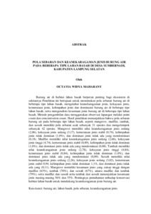 POLA SEBARAN DAN KEANEKARAGAMAN JENIS BURUNG AIR PADA BEBERAPA TIPE LAHAN BASAH DI DESA SUMBERNADI, KABUPATEN LAMPUNG SELATAN