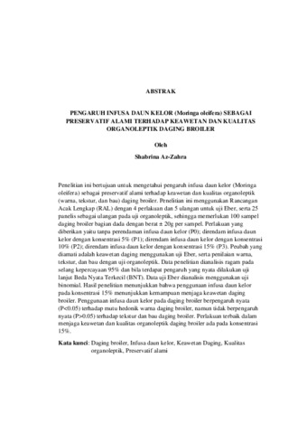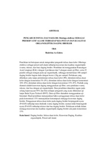 Shabrina , Az-Zahra (2025) PENGARUH INFUSA DAUN KELOR (Moringa oleifera) SEBAGAI PRESERVATIF ALAMI TERHADAP KEAWETAN DAN KUALITAS ORGANOLEPTIK DAGING BROILER. FAKULTAS PERTANIAN, UNIVERSITAS LAMPUNG.