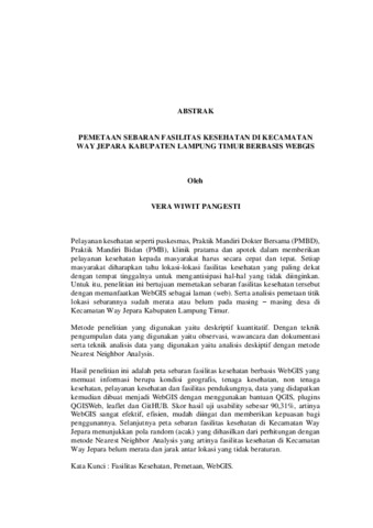 Vera , Wiwit Pangesti (2025) PEMETAAN SEBARAN FASILITAS KESEHATAN DI KECAMATAN WAY JEPARA KABUPATEN LAMPUNG TIMUR BERBASIS WEBGIS. FAKULTAS KEGURUAN DAN ILMU PENDIDIKAN, UNIVERSITAS LAMPUNG.