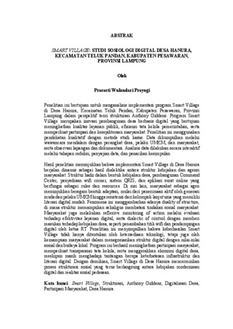 Prasasti Wulandari, Prayogi (2025) SMART VILLAGE: STUDI SOSIOLOGI DIGITAL DESA HANURA, KECAMATAN TELUK PANDAN, KABUPATEN PESAWARAN, PROVINSI LAMPUNG. FAKULTAS ILMU SOSIAL DAN ILMU POLITIK, UNIVERSITAS LAMPUNG.