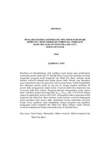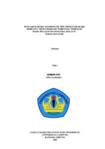 QURROTA , AINI (2025) PENGARUH MODEL KOOPERATIF TIPE THINK PAIR SHARE BERBANTU MEDIA BERBASIS WORDWALL TERHADAP HASIL BELAJAR MATEMATIKA KELAS IV SEKOLAH DASAR. FAKULTAS KEGURUAN DAN ILMU PENDIDIKAN, UNIVERSITAS LAMPUNG.