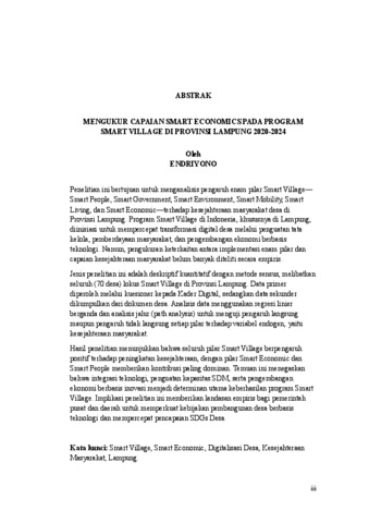 Endriyono , - (2025) MENGUKUR CAPAIAN SMART ECONOMICS PADA PROGRAM SMART VILLAGE DI PROVINSI LAMPUNG 2020-2024. Masters thesis, UNIVERSITAS LAMPUNG .