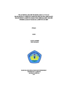 Aulya , Saverin (2025) NILAI MORAL DILOM TRADISI LISAN MUWAYAK MASYARAKAT LAMPUNG SAIBATIN PEKON WAY MENGAKU BALIK BUKIT LAMPUNG BARAT RIK IMPLIKASINI DILOM PEMBELAJARAN BAHASA LAMPUNG DI SMP. FAKULTAS KEGURUAN DAN ILMU PENDIDIKAN , UNIVERSITAS LAMPUNG.