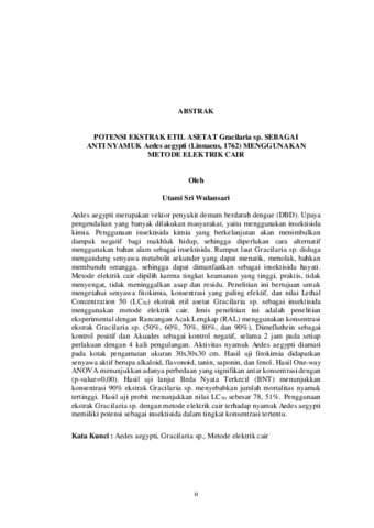 POTENSI EKSTRAK ETIL ASETAT Gracilaria sp. SEBAGAI ANTI NYAMUK Aedes aegypti (Linnaeus, 1762) MENGGUNAKAN METODE ELEKTRIK CAIR