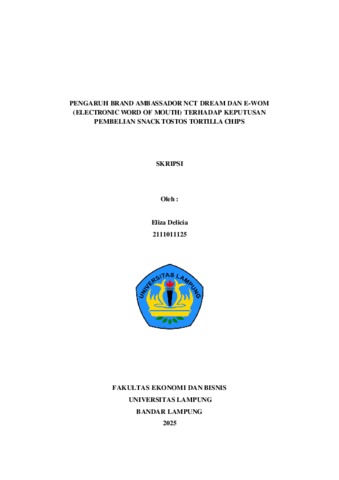 Eliza, Delicia (2025) PENGARUH BRAND AMBASSADOR NCT DREAM DAN E-WOM (ELECTRONIC WORD OF MOUTH) TERHADAP KEPUTUSAN PEMBELIAN SNACK TOSTOS TORTILLA CHIPS. FAKULTAS EKONOMI DAN BISNIS, UNIVERSITAS LAMPUNG.