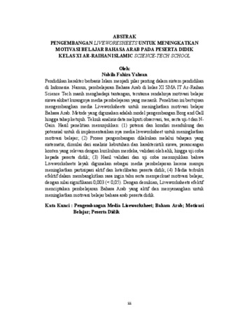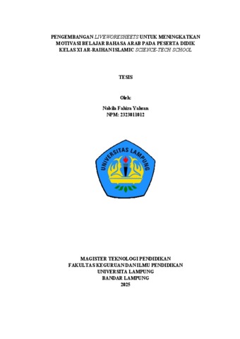 Nabila Fahira , Yahsan (2025) PENGEMBANGAN LIVEWORKSHEETS UNTUK MENINGKATKAN MOTIVASI BELAJAR BAHASA ARAB PADA PESERTA DIDIK KELAS XI AR-RAIHAN ISLAMIC SCIENCE-TECH SCHOOL. Masters thesis, UNIVERSITAS LAMPUNG .