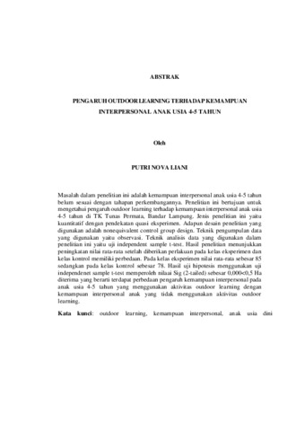 Putri , Nova Liani (2025) PENGARUH OUTDOOR LEARNING TERHADAP KEMAMPUAN INTERPERSONAL ANAK USIA 4-5 TAHUN. FAKULTAS KEGURUAN DAN ILMU PENDIDIKAN , UNIVERSITAS LAMPUNG.