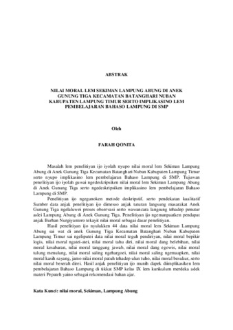 NILAI MORAL DALAM SEKIMAN LAMPUNG ABUNG DI DESA GUNUNG TIGA KECAMATAN BATANGHARI NUBAN KABUPATEN LAMPUNG TIMUR DAN IMPLIKASINYA DALAM PEMBELAJARAN BAHASA LAMPUNG DI SMP