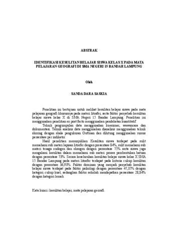 IDENTIFIKASI KESULITAN BELAJAR SISWA KELAS X PADA MATA PELAJARAN GEOGRAFI DI SMA NEGERI 15 BANDAR LAMPUNG