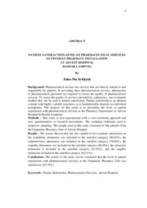 Zahra , Nur Sa'diyyah (2025) TINGKAT KEPUASAN PASIEN PELAYANAN KEFARMASIAN INSTALASI FARMASI RAWAT JALAN DI RUMAH SAKIT ADVENT BANDAR LAMPUNG. FAKULTAS KEDOKTERAN, UNIVERSITAS LAMPUNG.