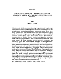 ABSTRAK Kehadiran media digital telah memberikan ruang yang lebih terbuka bagi berbagai kelompok sosial, termasuk penyandang disabilitas, untuk terlibat dalam produksi dan distribusi konten kreatif. Representasi difabel dalam media menjadi penting untuk dikaji, terutama dalam konteks konten hiburan yang dapat membentuk persepsi publik. Penelitian ini bertujuan untuk mengetahui bagaimana audiens non-difabel memaknai kehadiran talent difabel dalam konten YouTube @TretanUniverse, khususnya dalam seri “Clash of Mutants”. Penelitian ini menggunakan teori analisis resepsi Stuart Hall yang menekankan peran aktif audiens dalam menafsirkan pesan media melalui tiga posisi decoding: dominant-hegemonic, negotiated, dan oppositional. Metode yang digunakan adalah pendekatan kualitatif dengan teknik pengumpulan data berupa wawancara mendalam terhadap enam informan non- difabel yang telah menonton konten tersebut. Hasil penelitian menunjukkan bahwa tiga informan berada pada posisi dominant, menerima representasi difabel secara positif sebagai bentuk keberagaman dan inklusi sosial. Dua informan menempati posisi negotiated, menyetujui kehadiran talent difabel namun tetap mengkritisi unsur humor yang dianggap berpotensi memperkuat stereotip. Satu informan berada pada posisi oppositional, menolak representasi tersebut karena dianggap memanfaatkan difabel untuk hiburan. Temuan ini menunjukkan bahwa penerimaan terhadap konten difabel sangat dipengaruhi oleh latar belakang sosial, pengalaman pribadi, serta nilai- nilai budaya yang dianut audiens. Oleh karena itu, penting bagi kreator konten untuk mempertimbangkan sensitivitas representasi difabel agar pesan yang disampaikan tidak bersifat merendahkan tetapi justru memberdayakan. Kata kunci: Difabel, Resepsi, Stuart Hall, Tretan Universe, YouTube ABSTRACT The emergence of digital media has opened broader opportunities for various social groups, including people with disabilities, to engage in the creation and dissemination of creative content. The representation of disabled individuals in media especially in entertainment has become a crucial subject of study as it shapes public perceptions. This research aims to examine how non-disabled audiences interpret the presence of disabled talents in the YouTube content of @TretanUniverse, particularly in the “Clash of Mutants” series. The study adopts Stuart Hall’s reception theory, which highlights the active role of audiences in interpreting media messages through three decoding positions: dominant-hegemonic, negotiated, and oppositional. A qualitative research method was used, with data collected through in-depth interviews with six non-disabled informants who had watched the content. The findings reveal that three informants adopted a dominant position, positively accepting the representation of disabled individuals as inclusive and diverse. Two informants held a negotiated stance, generally agreeing with the representation while raising concerns about potentially stereotyping humor. One informant took an oppositional view, rejecting the content due to perceived exploitation. These findings highlight that audience reception is influenced by personal experiences, social backgrounds, and cultural values. Therefore, content creators must be sensitive in their representation of disability to avoid reinforcing stigma and instead foster empowerment. Keywords: Disability, Reception, Stuart Hall, Tretan Univers, YouTube
