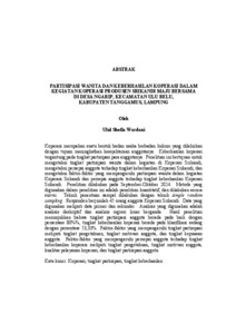 PARTISIPASI WANITA DAN KEBERHASILAN KOPERASI DALAM KEGIATAN KOPERASI PRODUSEN SRIKANDI MAJU BERSAMA DI DESA NGARIP, KECAMATAN ULU BELU, KABUPATEN TANGGAMUS, LAMPUNG