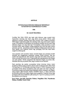 ABSTRAK PENYELESAIAN HUKUM TERHADAP SERTIFIKAT TANAH DENGAN KEPEMILIKAN GANDA(SKRIPSI M.GALIH VIHANDIKA 2112011015) - M.Galih Vihandika.pdf