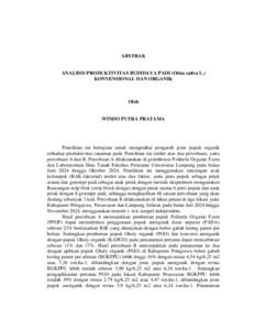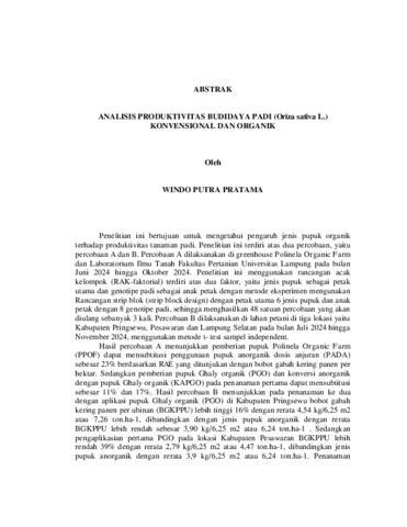 Windo, Putra Pratama (2025) ANALISIS PRODUKTIVITAS BUDIDAYA PADI (Oriza sativa L.) KONVENSIONAL DAN ORGANIK. Masters thesis, UNIVERSITAS LAMPUNG.