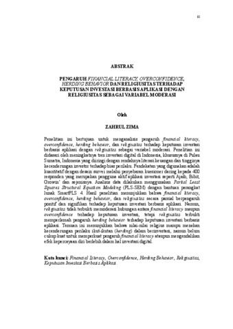 ZAHRUL, ZIMA (2025) PENGARUH FINANCIAL LITERACY, OVERCONFIDENCE, HERDING BEHAVIOR DAN RELIGIUSITAS TERHADAP KEPUTUSAN INVESTASI BERBASIS APLIKASI DENGAN RELIGIUSITAS SEBAGAI VARIABEL MODERASI. Masters thesis, UNIVERSITAS LAMPUNG.