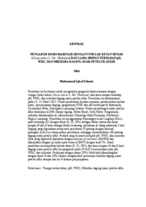Penelitian ini bertujuan untuk mengetahui pengaruh dosis marinasi dengan vinegar ketan hitam (Oryza sativa L. Var. Glutinosa) dan lama simpan terhadap pH, WHC, dan mikroba daging ayam petelur afkir. Penelitian ini dilaksanakan pada 13--21 Maret 2025. Proses pembuatan larutan marinasi, pembentukan karkas ayam, penyimpanan daging, pengukuran WHC dan pH bertempat di Bataranila, Kecamatan Natar, Kabupaten Lampung Selatan. Proses pemotongan ayam petelur afkir dilakukan di RPA Ganjar Agung, Metro Barat, Kota Metro. Pengukuran mikroba dilaksanakan di Laboratorium Teknologi Hasil Pertanian, Politeknik Negeri Lampung. Penelitian ini menggunakan Rancangan Acak Lengkap (RAL) pola tersarang 3x2 dengan dosis (0, 10, 20%) sebagai faktor utama dan lama simpan (0 dan 8 hari) sebagai faktor tersarang, perlakuan di ulang sebanyak 3 kali. Daging yang digunakan setiap satu percobaan 10 potong dengan dimensi potongan 3x3x2cm setiap satuan percobaan, sehingga membutuhkan 180 potong daging ayam petelur afkir. Peubah yang di amati meliputi pH, WHC, dan mikroba. Data yang diperoleh dianalisis dengan analysis of variance (ANOVA) dan dilanjutkan dengan uji beda nyata terkecil (BNT) dengan taraf 5%. Hasil penelitian menunjukkan bahwa dosis (0, 10, 20%) dan lama simpan (0 dan 8 hari) daging ayam petelur afkir berpengaruh nyata (P<0,05) menurunkan nilai pH, WHC, dan mikroba. Perlakuan dengan dosis (20%) lebih baik dibandingkan dengan dosis (0 dan 10%) dalam menghambat penurunan kualitas daging ayam petelur afkir sampai hari ke-8 selama penyimpanan. Kata kunci : Vinegar ketan hitam, pH, WHC, Mikroba, daging ayam petelur afkir This study aims to determine the effect of marination dose with black sticky rice vinegar (Oryza sativa L. Var. Glutinosa) and storage time on pH, WHC, and microbes of retired laying hen meat. This study was conducted on March 13-21, 2025. The process of making marinade solution, forming chicken carcasses, storing meat, measuring WHC and pH took place in Bataranila, Natar District, South Lampung Regency. The process of slaughtering retired laying hens was carried out at the Ganjar Agung RPA, West Metro, Metro City. Microbial measurements were carried out at the Agricultural Product Technology Laboratory, Lampung State Polytechnic. This study used a Completely Randomized Design (CRD) with a 3x2 nested pattern with doses (0, 10, 20%) as the main factors and storage time (0 and 8 days) as nested factors, the treatment was repeated 3 times. The meat used for each experiment was 10 pieces with dimensions of 3x3x2cm for each experimental unit, thus requiring 180 pieces of retired laying hen meat. The variables observed included pH, WHC, and microbes. The data obtained were analyzed by analysis of variance (ANOVA) and continued with the least significant difference test (LSD) at a level of 5%. The results showed that the dose (0, 10, 20%) and storage time (0 and 8 days) of rejected laying hen meat had a significant effect (P <0.05) on pH, WHC, and microbes. Treatment with a dose (20%) was better than the doses (0 and 10%) in inhibiting the decline in the quality of rejected laying hen meat until the 8th day during storage. Keywords: Black sticky rice vinegar, pH, WHC, Microbes, discarded laying hen meat