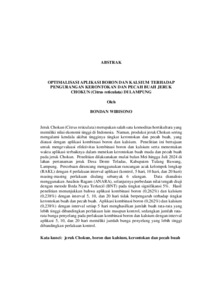 OPTIMALISASI APLIKASI BORON DAN KALSIUM TERHADAP PENGURANGAN KERONTOKAN DAN PECAH BUAH JERUK CHOKUN (Citrus reticulata) DI LAMPUNG