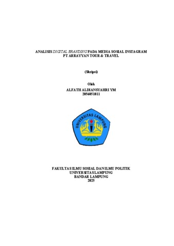 Alfath , Aldiansyahri YM (2025) ANALISIS DIGITAL BRANDING PADA MEDIA SOSIAL INSTAGRAM PT ARRAYYAN TOUR & TRAVEL. FAKULTAS ILMU SOSIAL DAN ILMU POLITIK, UNIVERSITAS LAMPUNG.