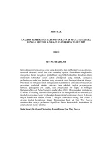 Siti Nurfadilah, - (2025) ANALISIS KEMISKINAN KABUPATEN KOTA DI PULAU SUMATERA DENGAN METODE K-MEANS CLUSTERING TAHUN 2023. FAKULTAS EKONOMI DAN BISNIS, UNIVERSITAS LAMPUNG.