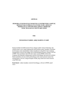 PEMODELAN RADIASI MATAHARI WILAYAH PROVINSI LAMPUNG MENGGUNAKAN PERALATAN PANEL SURYA DENGAN PERHITUNGAN METODE BEDA HINGGA BERBASIS TITIK TENGAH DAN SOFTWARE LINDO
