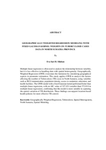 Eva Sari B. , Silaban (2025) GEOGRAPHICALLY WEIGHTED REGRESSION MODELING WITH FIXED GAUSSIAN KERNEL WEIGHTS ON TUBERCULOSIS CASES DATA IN NORTH SUMATRA PROVINCE. Masters thesis, UNIVERSITAS LAMPUNG.