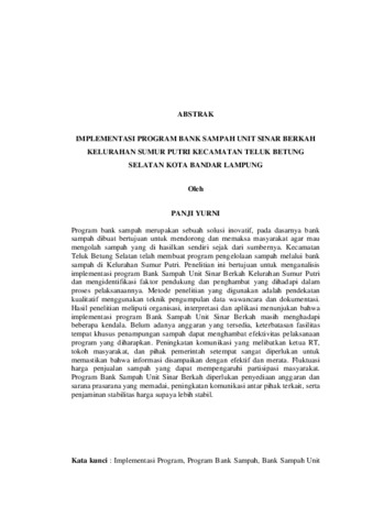 Panji , Yurni (2025) IMPLEMENTASI PROGRAM BANK SAMPAH UNIT SINAR BERKAH KELURAHAN SUMUR PUTRI KECAMATAN TELUK BETUNG SELATAN KOTA BANDAR LAMPUNG. FAKULTAS ILMU SOSIAL DAN ILMU POLITIK, UNIVERSITAS LAMPUNG.