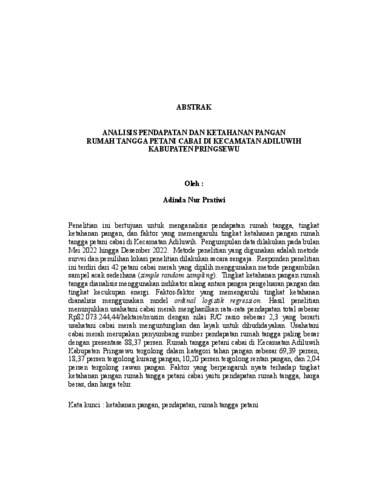 Adinda, Nur Pratiwi (2025) ANALISIS PENDAPATAN DAN KETAHANAN PANGAN RUMAH TANGGA PETANI CABAI DI KECAMATAN ADILUWIH KABUPATEN PRINGSEWU. FAKULTAS PERTANIAN, UNIVERSITAS LAMPUNG .