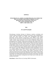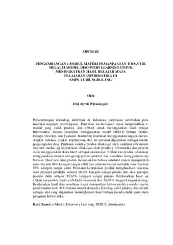 Dwi Aprili , Wiraningsih (2025) PENGEMBANGAN e-MODUL MATERI PEMANFAATAN TOOLS TIK MELALUI MODEL DISCOVERY LEARNING UNTUK MENINGKATKAN HASIL BELAJAR MATA PELAJARAN INFORMATIKA DI SMPN 1 CIBUNGBULANG. FAKULTAS KEGURUAN DAN ILMU PENDIDIKAN, UNIVERSITAS LAMPUNG.