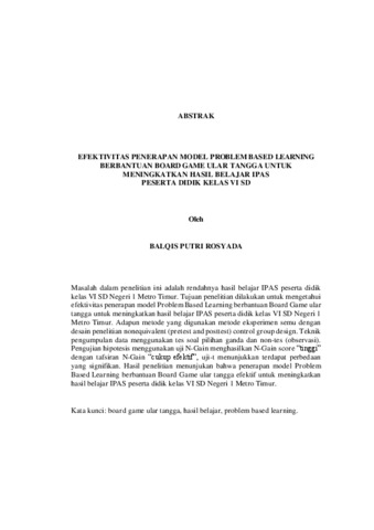 Balqis Putri Rosyada, - (2025) EFEKTIVITAS PENERAPAN MODEL PROBLEM BASED LEARNING BERBANTUAN BOARD GAME ULAR TANGGA UNTUK MENINGKATKAN HASIL BELAJAR IPAS PESERTA DIDIK KELAS VI SD. FAKULTAS KEGURUAN DAN ILMU PENDIDIKAN, UNIVERSITAS LAMPUNG.