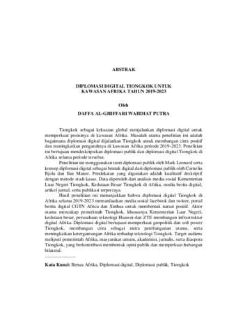 Tiongkok sebagai kekuatan global menjalankan diplomasi digital untuk memperkuat posisinya di kawasan Afrika. Masalah utama penelitian ini adalah bagaimana diplomasi digital dijalankan Tiongkok untuk membangun citra positif dan meningkatkan pengaruhnya di kawasan Afrika periode 2019-2023. Penelitian ini bertujuan mendeskripsikan diplomasi publik dan diplomasi digital Tiongkok di Afrika selama periode tersebut. Penelitian ini menggunakan teori diplomasi publik oleh Mark Leonard serta konsep diplomasi digital sebagai bentuk digital dari diplomasi publik oleh Corneliu Bjola dan Ilan Manor. Pendekatan yang digunakan adalah kualitatif deskriptif dengan metode studi kasus. Data diperoleh dari analisis media sosial Kementerian Luar Negeri Tiongkok, Kedutaan Besar Tiongkok di Afrika, media berita digital, artikel jurnal, serta publikasi terpercaya. Hasil penelitian ini menunjukkan bahwa diplomasi digital Tiongkok di Afrika selama 2019-2023 memanfaatkan media sosial facebook dan twitter, portal berita digital CGTN Africa dan Xinhua untuk membentuk narasi positif. Aktor utama mencakup pemerintah Tiongkok, khususnya Kementerian Luar Negeri, kedutaan besar, perusahaan teknologi Huawei dan ZTE membangun infrastruktur digital Afrika. Diplomasi digital bertujuan memperkuat geopolitik dan soft power Tiongkok, membangun citra sebagai mitra pembangunan utama, serta meningkatkan ketergantungan Afrika terhadap teknologi Tiongkok. Target audiens meliputi pemerintah Afrika, masyarakat umum, akademisi, jurnalis, serta diaspora Tiongkok, yang berkontribusi membentuk opini publik dan memperkuat hubungan bilateral. ______________ Kata Kunci: Benua Afrika, Diplomasi digital, Diplomasi publik, Tiongkok China, as a global power, is conducting digital diplomacy to strengthen its position in the African region. The main issue of this research is how China carries out digital diplomacy to build a positive image and increase its influence in Africa during the period of 2019-2023. This research aims to describe China's public diplomacy and digital diplomacy in Africa during this period. This research uses Mark Leonard's public diplomacy theory and the concept of digital diplomacy as a digital form of public diplomacy by Corneliu Bjola and Ilan Manor. The approach used is a descriptive qualitative method with a case study approach. Data is collected from the analysis of the Chinese Ministry of Foreign Affairs' social media, the Chinese Embassy in Africa, digital news media, journal articles, and reputable publications. The findings of this study show that China's digital diplomacy in Africa during 2019-2023 utilized social media platforms like Facebook and Twitter, as well as digital news portals such as CGTN Africa and Xinhua to shape positive narratives. Key actors include the Chinese government, particularly the Ministry of Foreign Affairs, embassies, and technology companies such as Huawei and ZTE, which are building Africa's digital infrastructure. The purpose of digital diplomacy is to strengthen China's geopolitical standing and soft power, build its image as a key development partner, and increase Africa's reliance on Chinese technology. The target audience includes African governments, the general public, academics, journalists, and the Chinese diaspora, all of whom contribute to shaping public opinion and strengthening bilateral relations. ______________ Keywords: African continent, Digital diplomacy, Public diplomacy, China