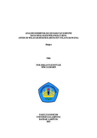 Nur Jihaan , Fauziyyah (2025) ANALISIS KRIMINOLOGI KEJAHATAN KORUPSI DANA DESA OLEH PERANGKAT DESA (STUDI DI WILAYAH HUKUM KABUPATEN TULANG BAWANG). FAKULTAS HUKUM, UNIVERISTAS LAMPUNG.