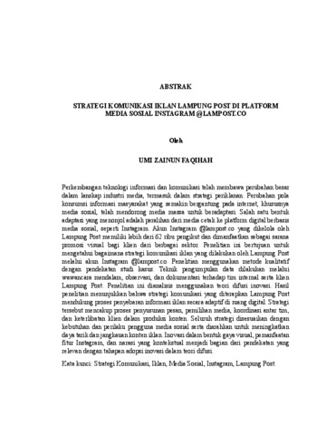 Umi Zainun , Faqihah (2025) STRATEGI KOMUNIKASI IKLAN LAMPUNG POST DI PLATFORM MEDIA SOSIAL INSTAGRAM @LAMPOST.CO. FAKULTAS ILMU SOSIAL DAN ILMU POLITIK, UNIVERSITAS LAMPUNG.
