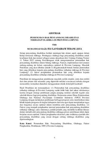 MUHAMMAD, RAJA SYA’LAN DAIBANI TERANG JAYA (2025) PEMENUHAN HAK PENYANDANG DISABILITAS TERHADAP OLAHRGA DI PROVINSI LAMPUNG. FAKULTAS HUKUM , UNIVERSITAS LAMPUNG.