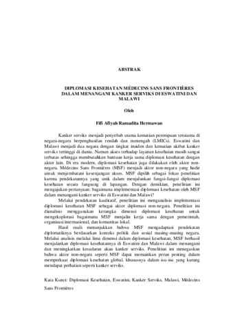 Fifi Afiyah , Ramadita Hermawan (2025) DIPLOMASI KESEHATAN MÉDECINS SANS FRONTIÈRES DALAM MENANGANI KANKER SERVIKS DI ESWATINI DAN MALAWI. FAKULTAS ILMU SOSIAL DAN ILMU POLITIK, UNIVERSITAS LAMPUNG.