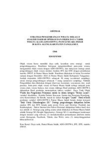 EDI , EFENDI (2025) STRATEGI PENGEMBANGAN WISATA MELALUI ANALISIS DAERAH OPERASI DAN OBJEK DAYA TARIK WISATA ALAM (ADO-ODTWA) PANTAI MUARA INDAH DI KOTA AGUNG KABUPATEN TANGGAMUS. Masters thesis, UNIVERSITAS LAMPUNG .