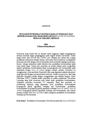 Erliana, Rohmatikasari (2025) PENGARUH PENDIDIKAN KEWIRAUSAHAAN TERHADAP NIAT BERWIRAUSAHA PADA MAHASISWA DENGAN LOCUS OF CONTROL SEBAGAI VARIABEL MEDIASI. FAKULTAS EKONOMI DAN BISNIS, UNIVERSITAS LAMPUNG .