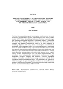 Ikke Nurjannah , - (2025) PENGARUH KEPEMIMPINAN TRANSFORMASIONAL DAN WORK LIFE BALANCE TERHADAP KINERJA KARYAWAN DENGAN KEPUASAN KERJA SEBAGAI VARIABEL MEDIASI PADA PT. VIRAMA KARYA CABANG KALIMANTAN. Masters thesis, UNIVERSITAS LAMPUNG.