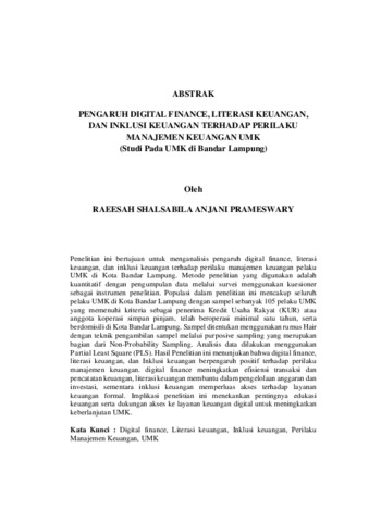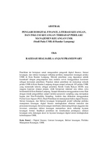 PENGARUH DIGITAL FINANCE, LITERASI KEUANGAN, DAN INKLUSI KEUANGAN TERHADAP PERILAKU MANAJEMEN KEUANGAN UMK (Studi Pada UMK di Bandar Lampung)