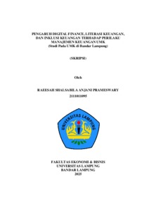 Raeesah Shalsabila Anjani Prameswary , - (2025) PENGARUH DIGITAL FINANCE, LITERASI KEUANGAN, DAN INKLUSI KEUANGAN TERHADAP PERILAKU MANAJEMEN KEUANGAN UMK (Studi Pada UMK di Bandar Lampung). FAKULTAS EKONOMI DAN BISNIS , UNIVERSITAS LAMPUNG .