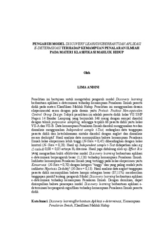 PENGARUH MODEL DISCOVERY LEARNINGBERBANTUAN APLIKASI E-DETERMINASI TERHADAP KEMAMPUAN PENALARAN ILMIAH PADA MATERI KLASIFIKASI MAHLUK HIDUP