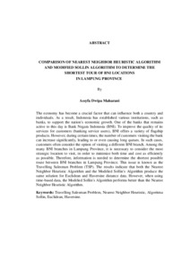 Assyfa, Dwipa Maharani (2025) PERBANDINGAN ALGORITMA NEAREST NEIGHBOR HEURISTIC DAN MODIFIKASI ALGORITMA SOLLIN UNTUK MENENTUKAN TOUR TERPENDEK LOKASI BNI DI PROVINSI LAMPUNG. FAKULTAS MATEMATIKA DAN ILMU PENGETAHUAN ALAM, UNIVERSITAS LAMPUNG .