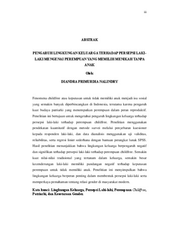 DIANDRA PRIMURDIA , NALINDRY (2025) PENGARUH LINGKUNGAN KELUARGA TERHADAP PERSEPSI LAKILAKI MENGENAI PEREMPUAN YANG MEMILIH MENIKAH TANPA ANAK. FAKULTAS ILMU SOSIAL DAN ILMU POLITIK, UNIVERSITAS LAMPUNG.