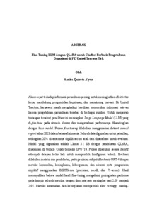Akses cepat terhadap informasi perusahaan penting untuk meningkatkan efektivitas kerja, mendukung pengambilan keputusan, dan mendorong inovasi. Di United Tractors, karyawan masih menghadapi kesulitan menemukan informasi relevan karena pengetahuan perusahaan tersebar di berbagai sumber. Untuk menjawab tantangan tersebut, penelitian ini menerapkan Large Language Model (LLM) yang di-fine-tune pada domain khusus dan mengevaluasi performanya dibandingkan dengan base model. Proses fine-tuning dilakukan menggunakan dataset annual report tahun 2023 dalam bahasa Indonesia. Seluruh data digunakan untuk pelatihan, sedangkan 20% di antaranya dipilih secara acak dan diparafrase untuk evaluasi. Model yang digunakan adalah Llama 3.1 8B dengan pendekatan QLoRA, dijalankan di Google Colab berbasis GPU T4. Proses dilakukan secara iteratif sebanyak delapan belas kali untuk memperoleh konfigurasi terbaik. Evaluasi dilakukan melalui dua pendekatan, yaitu penilaian subjektif berbasis GPT-4 dengan metriks keramahan, keringkasan, kebergunaan, dan akurasi serta pengukuran objektif menggunakan BERTScore (precision, recall, dan F1-score). Hasil menunjukkan bahwa model hasil fine-tuning mengalami peningkatan performa pada hampir seluruh metriks, dengan skor rata-rata meningkat dari 2,09 menjadi 2,95. Metriks keramahan dan keringkasan memperoleh skor tertinggi masing-masing sebesar 4,09 dan 4, sementara kebergunaan dan akurasi memperoleh skor 3 dan 2,38. Nilai F1 BERTScore juga meningkat dari 0,659 menjadi 0,818, yang menandakan peningkatan kesamaan semantik. Temuan ini membuktikan bahwa fine-tuning efektif dalam meningkatkan kualitas respons model, khususnya dalam aspek keringkasan, keramahan, dan kesesuaian semantik dengan jawaban referensi. Namun, model masih memiliki keterbatasan dalam menghasilkan informasi faktual atau angka kuantitatif yang akurat sebagaimana tercantum dalam annual report. Quick access to important company information is essential for improving work effectiveness, supporting decision-making, and encouraging innovation. At United Tractors, employees still face difficulties finding relevant information because company knowledge is scattered across various sources. To address this challenge, this study applies a Large Language Model (LLM) that is fine-tuned to a specific domain and evaluates its performance compared to the base model. The fine-tuning process was carried out using the 2023 annual report dataset in Indonesian. All data was used for training, while 20% of it was randomly selected and paraphrased for evaluation. The model used was Llama 3.1 8B with the QLoRA approach, run on Google Colab based on GPU T4. The process was carried out iteratively eighteen times to obtain the best configuration. The evaluation was conducted using two approaches, namely subjective assessment based on GPT-4 with metrics of friendliness, conciseness, usefulness, and accuracy, as well as objective measurement using BERTScore (precision, recall, and F1-score). The results show that the fine-tuned model experienced improved performance across almost all metrics, with the average score increasing from 2.09 to 2.95. The friendliness and conciseness metrics received the highest scores of 4.09 and 4, respectively, while usefulness and accuracy received scores of 3 and 2.38. The BERTScore F1 value also increased from 0.659 to 0.818, indicating an increase in semantic similarity. These findings prove that fine-tuning is effective in improving the quality of model responses, particularly in terms of conciseness, friendliness, and semantic similarity to the reference answers. However, the model still has limitations in generating accurate factual information or quantitative figures as stated in the annual report.