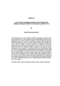 ABSTRACT Cemilll Enyakkk is one of the MSMEs in Bandar Lampung that produced mochi with innovative flavors. Mochi products from Cemilll Enyakkk had experienced a significant decline in sales, thereby necessitating a customer satisfaction analysis to develop their products in order to increase sales and compete more broadly in the market. The data analysis in this study employed the Importance-Performance Analysis (IPA) and Customer Satisfaction Index (CSI) methods. The results of the study indicated that the attributes included in quadrant I (top priority) was the selling price; those in quadrant II (maintain achievement) was sweetness, filling taste, level of chewiness, absence of languishing aroma, and suitability of the selling price; those in quadrant III (low priority) were the level of hardness or stickiness of the skin, natural-looking color, color variation, product aroma, product availability, and the number of product variations available; while those in quadrant IV (tend to be excessive) were variations in taste and texture of the filling. The calculation of the consumer satisfaction index for this Cemilll Enyakkk mochi product yielded a value of 83%, indicating that consumers were highly satisfied with the performance level of the product. Keywords: Mochi, consumer satisfaction, product interest, product performance. ABSTRAK Cemilll Enyakkk merupakan salah satu UMKM di Bandar Lampung yang memproduksi mochi dengan rasa inovatif. Produk mochi dari Cemilll Enyakkk mengalami penurunan penjualan yang cukup signifikan sehingga diperlukan analisis kepuasan konsumen untuk mengembangkan produk mereka agar meningkatkan kembali penjualannya dan dapat bersaing lebih luas di pasaran. Analisis data dalam penelitian ini menggunakan metode Important Performance Analysis (IPA) dan Customer Satisfication Index (CSI). Hasil dari penelitian ini menunjukkan bahwa atribut yang termasuk ke dalam kuadran I (prioritas utama) yaitu harga jual, yang termasuk ke dalam kuadran II (pertahankan prestasi) yaitu rasa manis, rasa isian, tingkat kekenyalan, tidak ada aroma langu, serta kesesuaian harga jual, yang termasuk ke dalam kuadran III (prioritas rendah) yaitu tingkat kekerasan atau kelengketan kulit, warna yang terlihat alami, variasi warna, aroma produk, ketersediaan produk, serta jumlah variasi produk yang tersedia, yang termasuk ke dalam kuadran IV (cenderung berlebihan) yaitu variasi rasa dan tekstur isian. Hasil perhitungan dari indeks kepuasan konsumen terhadap produk mochi Cemilll Enyakkk ini memperoleh nilai sebesar 83%, sehingga dapat dikatakan bahwa konsumen merasa sangat puas terhadap tingkat kinerja yang terdapat pada produk tersebut. Kata kunci: Mochi, kepuasan konsumen, kepentingan produk, kinerja produk
