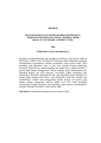 ABSTRAK Penelitian ini dilatarbelakangi oleh rendahnya kecerdasan sosial peserta didik di SD Negeri 4 Metro Utara. Penelitian ini bertujuan untuk mengetahui pengaruh ekstrakurikuler kepramukaan terhadap kecerdasam sosial peserta didik. Jenis penelitian yang digunakan yaitu ex post facto korelasi dengan pendekatan kuantitatif. Populasi dan sampel penelitian ini adalah kelas 4 dengan jumlah 73 peserta didik dengan menggunakan Teknik sampling jenuh. Pengumpulan data dilakukan dengan cara yaitu observasi, wawancara, angket (kuesioner), dan dokumentasi. Instrumen pengumpulan data yang digunakan dalam penelitian ini berupa angket dengan skala Likert, yang sebelumnya telah diuji validitas dan reliabilitasnya. Analisis data menggunakan teknik analysis of variance yang dibantu dengan penggunaan software SPSS versi 27.0. Hasil penelitian menunjukkan terdapat pengaruh yang signifikan antara kegiatan ekstrakurikuler pramuka terhadap kecerdasan sosial peserta didik. Kata kunci: ekstrakurikuler kepramukaan, kecerdasan sosial. ABSTRACT This research was motivated by the low social intelligence of students at SD Negeri 4 Metro Utara. This research aims to determine the influence of scouting extracurriculars on students' social intelligence. The type of research used is ex post facto correlation with a quantitative approach. The population and sample of this study was grade 4 with a total of 73 students using saturated sampling techniques. Data collection was carried out by means of observation, interviews, questionnaires and documentation. The data collection instrument used in this research was a questionnaire with a Likert scale, which had previously been tested for validity and reliability. Data analysis used analysis of variance techniques assisted by the use of SPSS version 27.0 software. The research results show that there is a significant influence between scout extracurricular activities on students' social intelligence. Key words: scouting extracurricular, social intelligence